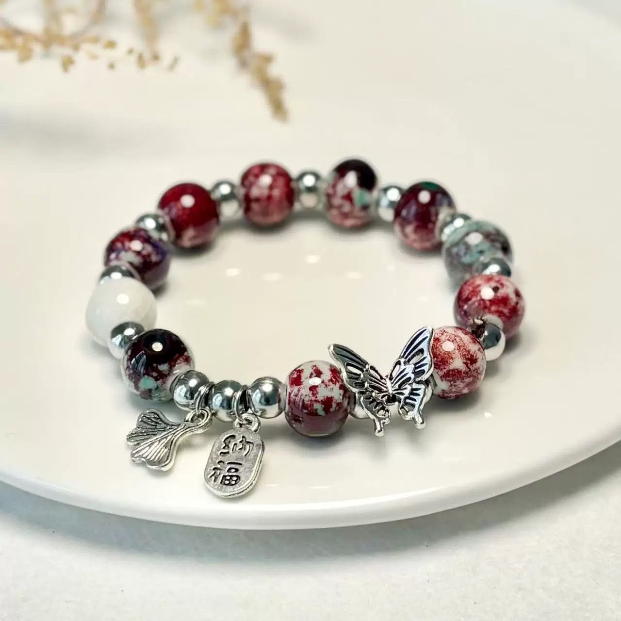 ✅ SEO-Focused Keywords: Designed for high search visibility with terms like handmade ceramic bracelet, butterfly ginkgo bracelet, Chinese lucky bracelet, boho beaded bracelet for women, ethnic jewelry gift.